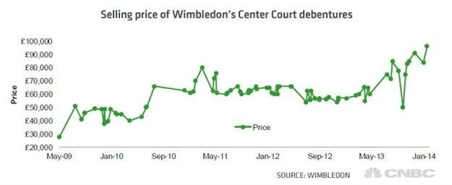 Podle All England Clubu, který pohyb obligací monitoruje, proběhly v poslední době tři transakce, jejichž cena se pohybovala od 84 do 96 tisíc liber. To znamená, že nyní již bývalí majitelé těchto prestižních vstupenek jejich prodejem po necelých pěti letech od nákupu vydělali takřka 250 %. "Pokud připustíme, že lze debenture lístky na Wimbledon za jistých okolností považovat za poměrně likvidní investiční instrument, je jejich atraktivita obrovská," uvedl v rozhovoru pro televizi CNBC předseda All England Clubu Philip Brook. Za výrazným cenovým skokem debenture "práv" ve druhé polovině jejich platnosti podle Brooka stojí především skutečnost, že poslední majitelé vstupenek mají po jejich expiraci přednostní právo na nákup dalších lístků v rámci nové emise.
