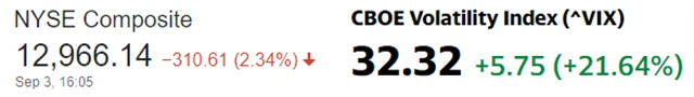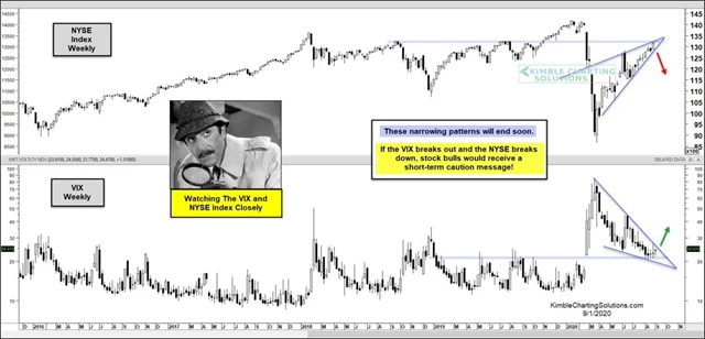 "NYSE Composite zaostává za Nasdaqem i S&P 500 a jeho zužující se trojúhelníková formace může brzy naznačit, kterým směrem se dále vydá," napsal ve středu 2. září. "Index volatility VIX zároveň signalizuje, že by mohl vystřelit výše."