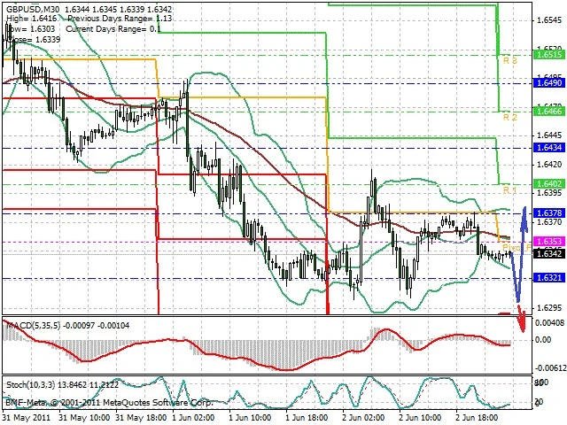 Předpokládaný pohyb pro dnešní den LONG. Případné vstupy do obchodu z hladiny 1.631 s předpokládaným cílem 1.638, případně až 1.6425. Proražení hladiny 1.63 vést k pohybu s pravděpodobným cílem 1.6265 až 1.621.