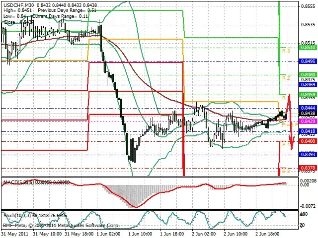 Předpokládaný pohyb pro dnešní den SHORT. Případné vstupy do obchodu z hladiny 0.846 s předpokládaným cílem 0.84, případně až 0.838. Proražení hladiny 0.846 může vést k pohybu s pravděpodobným cílem 0.8515 až 0.855.