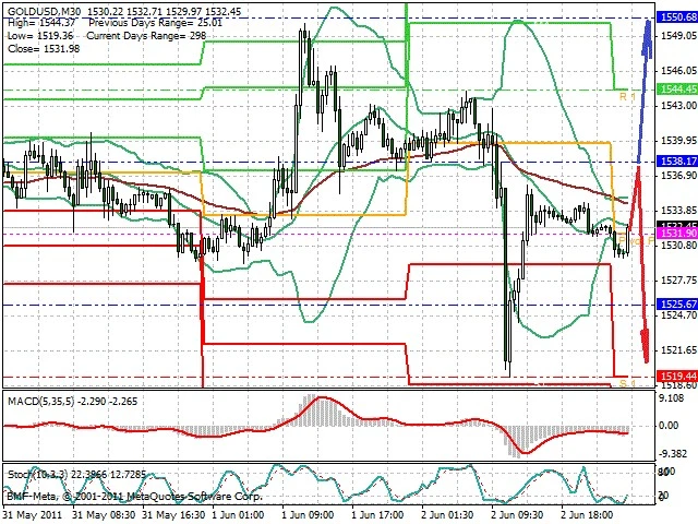Předpokládaný pohyb pro dnešní den SHORT. Případné vstupy do obchodu z hladiny 1 538 s předpokládaným cílem 1 520, případně až 1 509. Proražení hladiny 1 538 může vést k pohybu s pravděpodobným cílem 1 550 až 1 555.