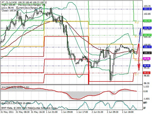 Předpokládaný pohyb pro dnešní den SHORT. Případné vstupy do obchodu z hladiny 100.95 s předpokládaným cílem 99.2, případně až 98.45. Proražení hladiny 100.95 může vést k pohybu s pravděpodobným cílem 101.8 až 102.75.