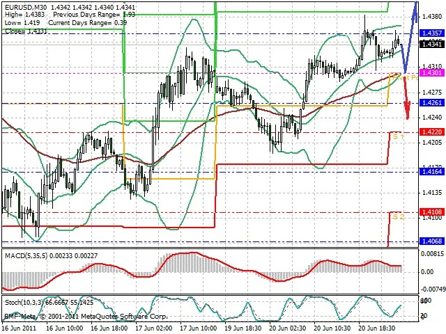 Předpokládaný pohyb pro dnešní den LONG. Případné vstupy do obchodu z hladiny 1.43 s předpokládaným cílem 1.44, případně až 1.445. Proražení hladiny 1.429 může vést k pohybu s pravděpodobným cílem 1.424 až 1.418.