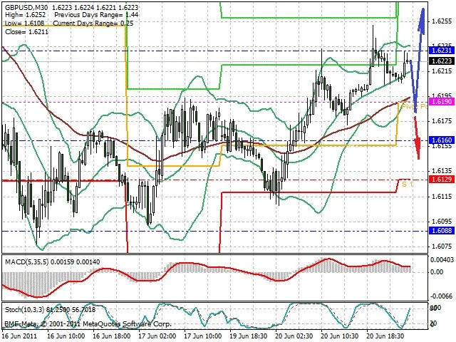 Předpokládaný pohyb pro dnešní den LONG. Případné vstupy do obchodu z hladiny 1.618 s předpokládaným cílem 1.626, případně až 1.6285. Proražení hladiny 1.617 vést k pohybu s pravděpodobným cílem 1.615 až 1.611.