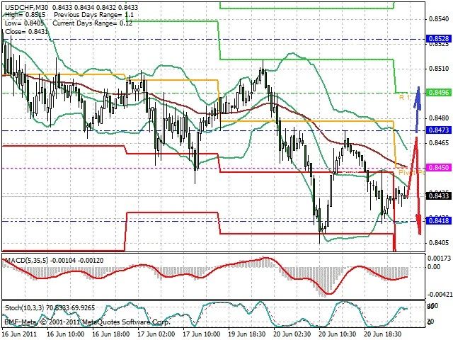 Předpokládaný pohyb pro dnešní den SHORT. Případné vstupy do obchodu z hladiny 0.847 s předpokládaným cílem 0.841, případně až 0.839. Proražení hladiny 0.847 může vést k pohybu s pravděpodobným cílem 0.85 až 0.852.