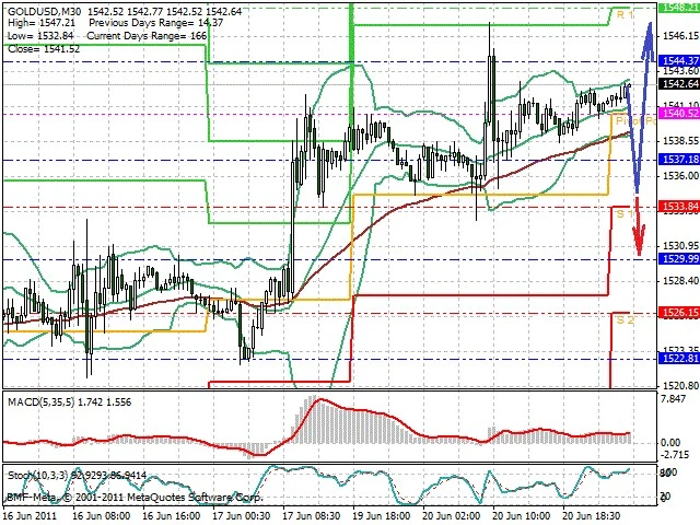 Předpokládaný pohyb pro dnešní den LONG. Případné vstupy do obchodu z hladiny 1 534 s předpokládaným cílem 1 547, případně až 1 550. Proražení hladiny 1 534 může vést k pohybu s pravděpodobným cílem 1 530 až 1 526.