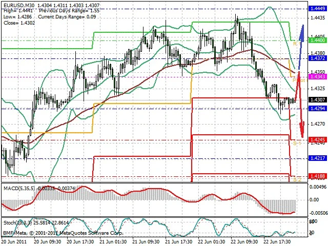 Předpokládaný pohyb pro dnešní den SHORT. Případné vstupy do obchodu z hladiny 1.435 s předpokládaným cílem 1.4255, případně až 1.4215. Proražení hladiny 1.436 může vést k pohybu s pravděpodobným cílem 1.442 až 1.4445.