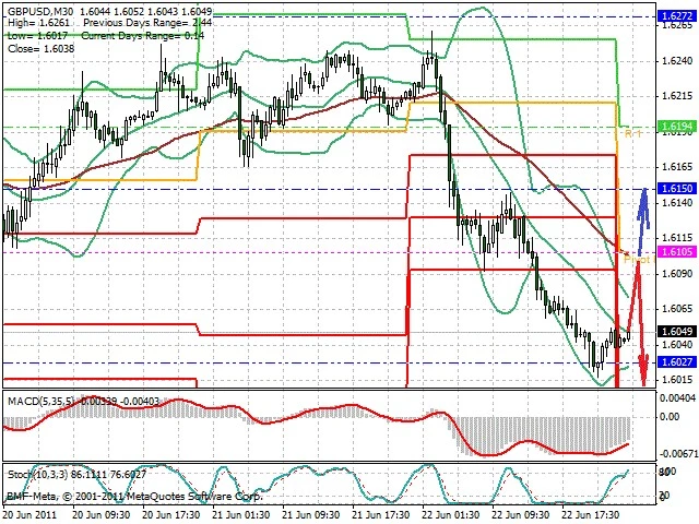 Předpokládaný pohyb pro dnešní den SHORT. Případné vstupy do obchodu z hladiny 1.61 s předpokládaným cílem 1.602, případně až 1.597. Proražení hladiny 1.611 vést k pohybu s pravděpodobným cílem 1.615 až 1.62.
