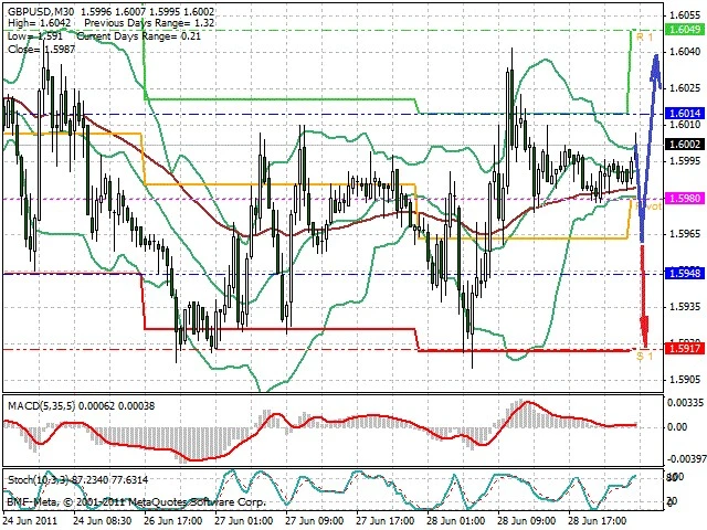 Předpokládaný pohyb pro dnešní den LONG. Případné vstupy do obchodu z hladiny 1.596 s předpokládaným cílem 1.6045, případně až 1.6075. Proražení hladiny 1.596 vést k pohybu s pravděpodobným cílem 1.5915 až 1.5885.