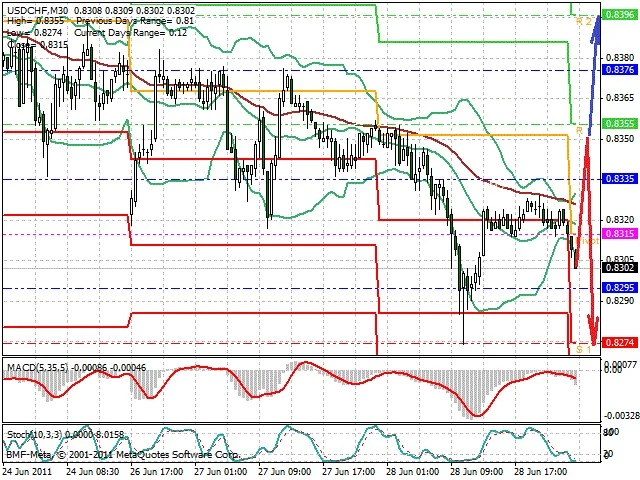 Předpokládaný pohyb pro dnešní den SHORT. Případné vstupy do obchodu z hladiny 0.835 s předpokládaným cílem 0.8275, případně až 0.825. Proražení hladiny 0.835 může vést k pohybu s pravděpodobným cílem 0.84 až 0.844.