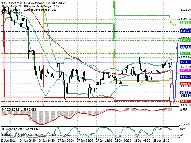 Předpokládaný pohyb pro dnešní den LONG. Případné vstupy do obchodu z hladiny 1 490 s předpokládaným cílem 1 511, případně až 1 518. Proražení hladiny 1 490 může vést k pohybu s pravděpodobným cílem 1 479 až 1 462.