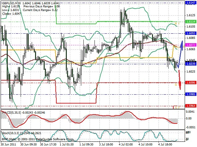 Předpokládaný pohyb pro dnešní den LONG. Případné vstupy do obchodu z hladiny 1.603 s předpokládaným cílem 1.6075, případně až 1.6115. Proražení hladiny 1.602 vést k pohybu s pravděpodobným cílem 1.599 až 1.595.