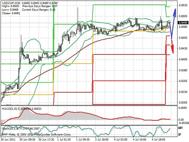 Předpokládaný pohyb pro dnešní den LONG. Případné vstupy do obchodu z hladiny 0.8455 s předpokládaným cílem 0.8525, případně až 0.8555. Proražení hladiny 0.845 může vést k pohybu s pravděpodobným cílem 0.8425 až 0.84.