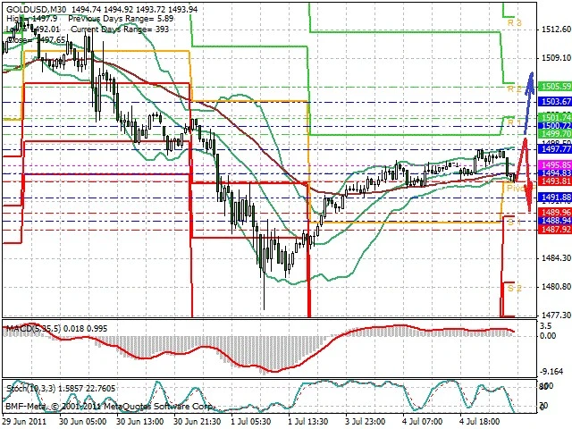Předpokládaný pohyb pro dnešní den SHORT. Případné vstupy do obchodu z hladiny 1 499 s předpokládaným cílem 1 490, případně až 1 478. Proražení hladiny 1 499 může vést k pohybu s pravděpodobným cílem 1 508 až 1 515.