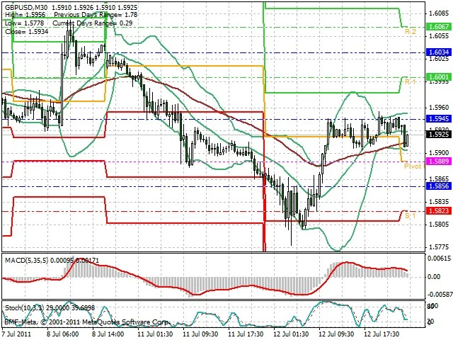 Předpokládaný pohyb pro dnešní den LONG. Případné vstupy do obchodu z hladiny 1.5885 s předpokládaným cílem 1.5975, případně až 1.6015. Proražení hladiny 1.5875 vést k pohybu s pravděpodobným cílem 1.5825 až 1.58.