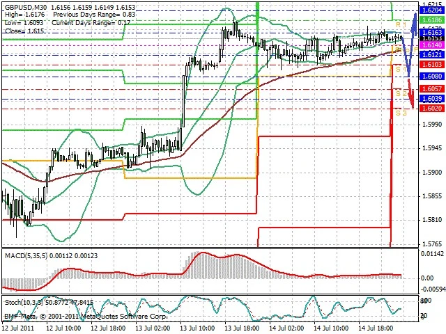 Předpokládaný pohyb pro dnešní den LONG. Případné vstupy do obchodu z hladiny 1.611 s předpokládaným cílem 1.62, případně až 1.6225. Proražení hladiny 1.61 vést k pohybu s pravděpodobným cílem 1.6075 až 1.603.