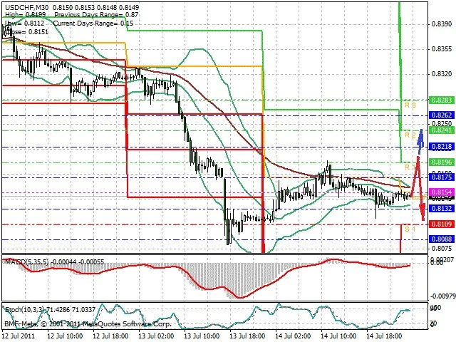 Předpokládaný pohyb pro dnešní den SHORT. Případné vstupy do obchodu z hladiny 0.82 s předpokládaným cílem 0.812, případně až 0.808. Proražení hladiny 0.8205 může vést k pohybu s pravděpodobným cílem 0.824 až 0.8275.