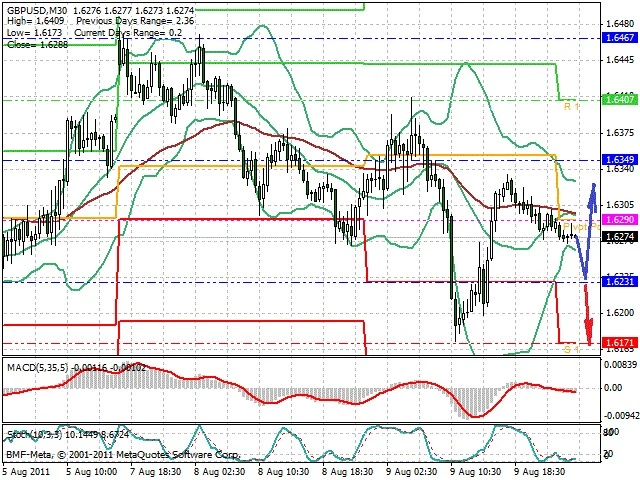 Předpokládaný pohyb pro dnešní den LONG. Případné vstupy do obchodu z hladiny 1.6235 s předpokládaným cílem 1.6325, případně až 1.6375. Proražení hladiny 1.6225 vést k pohybu s pravděpodobným cílem 1.6175 až 1.612.
