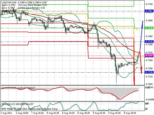 Předpokládaný pohyb pro dnešní den SHORT. Případné vstupy do obchodu z hladiny 0.734 s předpokládaným cílem 0.715, případně až 0.706. Proražení hladiny 0.7345 může vést k pohybu s pravděpodobným cílem 0.749 až 0.76.