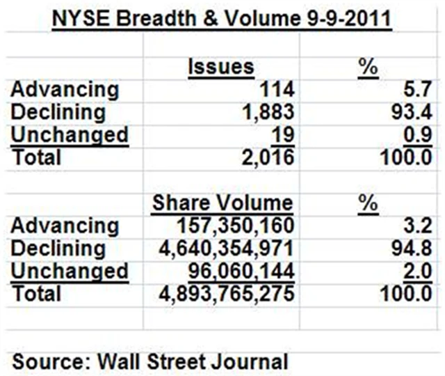 Ekonomické zprávy byly opět smíšené, většinou negativní. Trhy očekávaly čtvrteční vystoupení Bena Bernankeho a večerní projev prezidenta Obamy. Nakonec se žádný pozitivní signál nedostavil a den skončil v červeném. Existovala určitá naděje, že do zasedání Fedu, které se uskuteční 20. a 21. září, se volatilita zklidní. Následoval ovšem páteční propad indexu S&P 500 o 2,7 %, Spojené státy následovaly výprodeje v Evropě.
