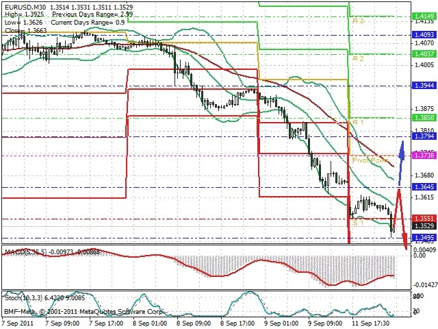 Předpokládaný pohyb pro dnešní den SHORT. Případné vstupy do obchodu z hladiny 1.364 s předpokládaným cílem 1.341, případně až 1.338. Proražení hladiny 1.365 může vést k pohybu s pravděpodobným cílem 1.372 až 1.3785.