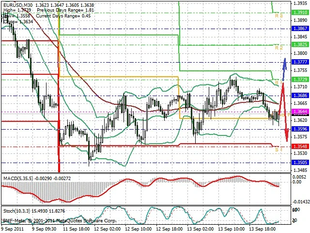 Předpokládaný pohyb pro dnešní den SHORT. Případné vstupy do obchodu z hladiny 1.372 s předpokládaným cílem 1.3555, případně až 1.3495. Proražení hladiny 1.373 může vést k pohybu s pravděpodobným cílem 1.379 až 1.388.