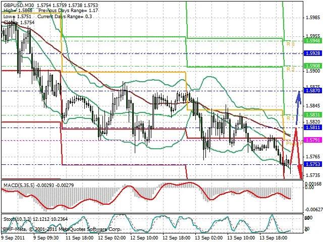 Předpokládaný pohyb pro dnešní den SHORT. Případné vstupy do obchodu z hladiny 1.581 s předpokládaným cílem 1.5695, případně až 1.566. Proražení hladiny 1.582 může vést k pohybu s pravděpodobným cílem 1.587 až 1.589.
