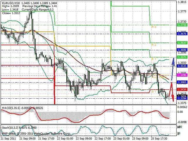 Předpokládaný pohyb pro dnešní den SHORT. Případné vstupy do obchodu z hladiny 1.3465 s předpokládaným cílem 1.3385, případně až 1.332. Proražení hladiny 1.3475 může vést k pohybu s pravděpodobným cílem 1.3575 až 1.363.