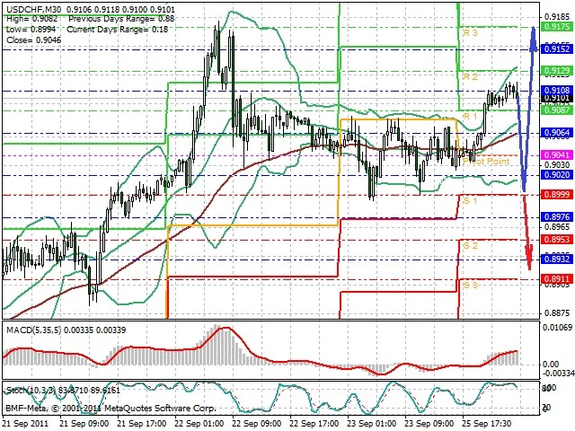 Předpokládaný pohyb pro dnešní den LONG. Případné vstupy do obchodu z hladiny 0.9 s předpokládaným cílem 0.9175, případně až 0.92. Proražení hladiny 0.899 může vést k pohybu s pravděpodobným cílem 0.892 až 0.885.