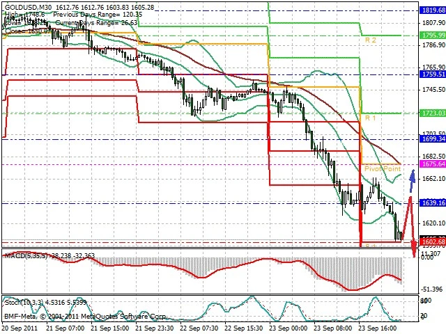 Předpokládaný pohyb pro dnešní den SHORT. Případné vstupy do obchodu z hladiny 1 645 s předpokládaným cílem 1 577, případně až 1 545. Proražení hladiny 1 645 může vést k pohybu s pravděpodobným cílem 1 665 až 1 690.