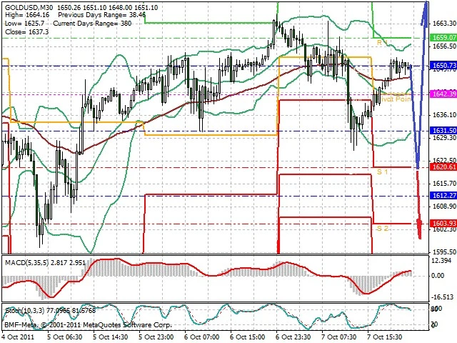 Předpokládaný pohyb pro dnešní den LONG. Případné vstupy do obchodu z hladiny 1 620 s předpokládaným cílem 1 680, případně až 1 700. Proražení hladiny 1 620 může vést k pohybu s pravděpodobným cílem 1 600 až 1 555.