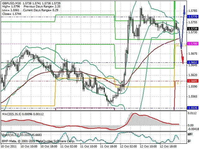 Předpokládaný pohyb pro dnešní den LONG. Případné vstupy do obchodu z hladiny 1.569 s předpokládaným cílem 1.58, případně až 1.5855. Proražení hladiny 1.569 může vést k pohybu s pravděpodobným cílem 1.565 až 1.561.