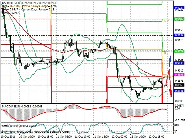 Předpokládaný pohyb pro dnešní den SHORT. Případné vstupy do obchodu z hladiny 0.902 s předpokládaným cílem 0.892, případně až 0.889. Proražení hladiny 0.902 může vést k pohybu s pravděpodobným cílem 0.9055 až 0.91.
