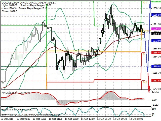 Předpokládaný pohyb pro dnešní den LONG. Případné vstupy do obchodu z hladiny 1 655 s předpokládaným cílem 1 692, případně až 1 715. Proražení hladiny 1 655 může vést k pohybu s pravděpodobným cílem 1 640 až 1 630.
