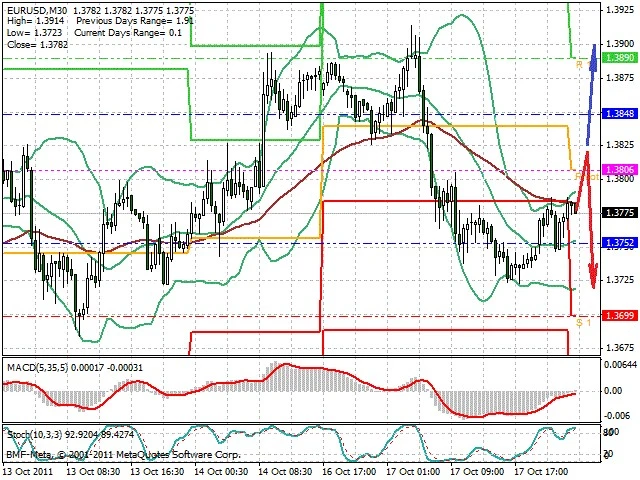 Předpokládaný pohyb pro dnešní den SHORT. Případné vstupy do obchodu z hladiny 1.382 s předpokládaným cílem 1.372, případně až 1.3685. Proražení hladiny 1.383 může vést k pohybu s pravděpodobným cílem 1.39 až 1.394.