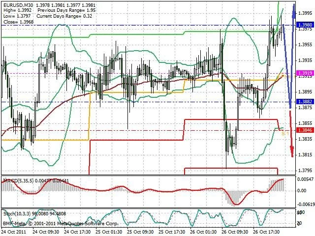 Předpokládaný pohyb pro dnešní den LONG. Případné vstupy do obchodu z hladiny 1.3875 s předpokládaným cílem 1.402, případně až 1.4055. Proražení hladiny 1.3875 může vést k pohybu s pravděpodobným cílem 1.381 až 1.375.