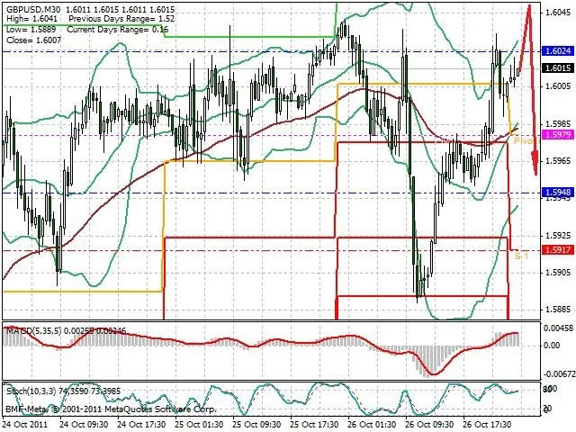Předpokládaný pohyb pro dnešní den SHORT. Případné vstupy do obchodu z hladiny 1.605 s předpokládaným cílem 1.5955, případně až 1.59. Proražení hladiny 1.605 může vést k pohybu s pravděpodobným cílem 1.609 až 1.612.