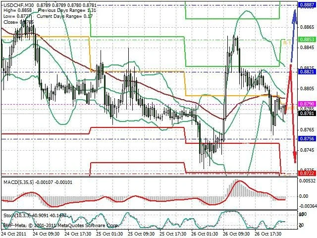 Předpokládaný pohyb pro dnešní den SHORT. Případné vstupy do obchodu z hladiny 0.883 s předpokládaným cílem 0.873, případně až 0.87. Proražení hladiny 0.883 může vést k pohybu s pravděpodobným cílem 0.888 až 0.8925.