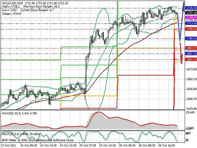 Předpokládaný pohyb pro dnešní den LONG. Případné vstupy do obchodu z hladiny 1 700 s předpokládaným cílem 1 730, případně až 1 750. Proražení hladiny 1 700 může vést k pohybu s pravděpodobným cílem 1 680 až 1 665.