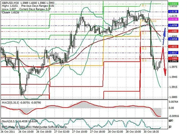 Předpokládaný pohyb pro dnešní den SHORT. Případné vstupy do obchodu z hladiny 1.6035 s předpokládaným cílem 1.595, případně až 1.59. Proražení hladiny 1.6035 může vést k pohybu s pravděpodobným cílem 1.609 až 1.615.