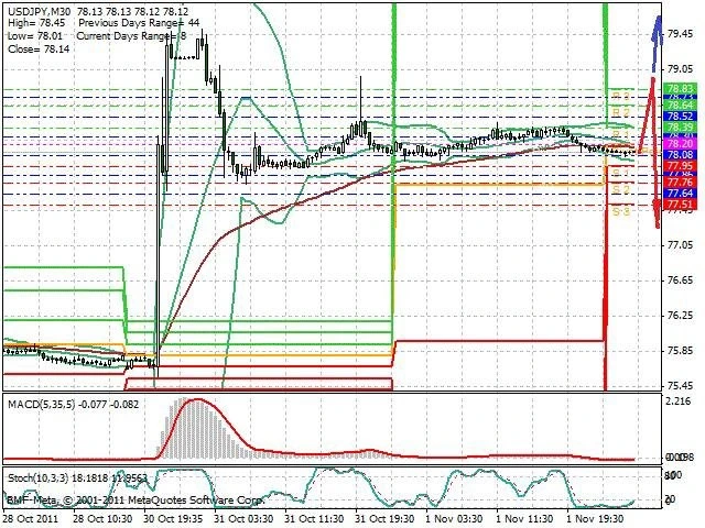 Předpokládaný pohyb pro dnešní den SHORT. Případné vstupy do obchodu z hladiny 79 s předpokládaným cílem 77.2, případně až 76.5. Proražení hladiny 79 může vést k pohybu s pravděpodobným cílem 79.5 až 80.1.