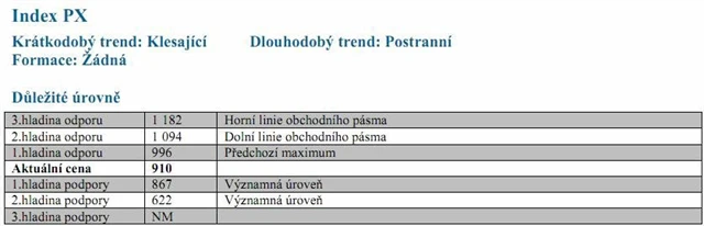 Technická analýza indexu PX: Nakupujte na 867 bodech