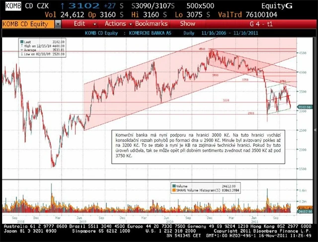 Komerční banka má nyní podporu na hranici 3 000 Kč. Na tuto hranici vychází konsolidační rozsah pohybů po formaci dna u 2 900 Kč. nedávno jsem avizoval pokles až na 3 200 Kč. To se stalo. Nyní je tak KB na zajímavé technické hranici. Pokud by tuto úroveň udržela, tak se může opět při dobrém sentimentu zvednout nad 3 500 Kč až pod 3 750 Kč.