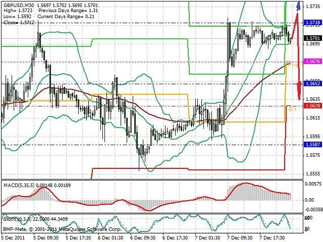 Předpokládaný pohyb pro dnešní den SHORT. Případné vstupy do obchodu z hladiny 1.5725 s předpokládaným cílem 1.5635, případně až 1.559. Proražení hladiny 1.5725 může vést k pohybu s pravděpodobným cílem 1.575 až 1.578.