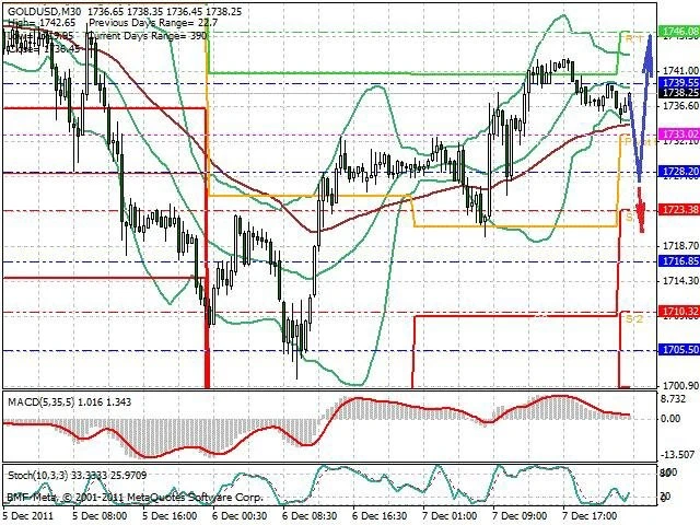 Předpokládaný pohyb pro dnešní den LONG. Případné vstupy do obchodu z hladiny 1 728 s předpokládaným cílem 1 746, případně až 1 754. Proražení hladiny 1 728 může vést k pohybu s pravděpodobným cílem 1 722 až 1 700.