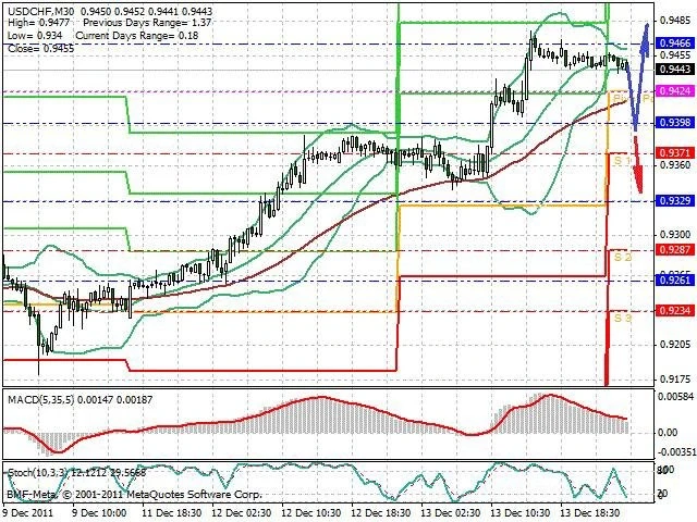 Předpokládaný pohyb pro dnešní den LONG. Případné vstupy do obchodu z hladiny 0.939 s předpokládaným cílem 0.9475, případně až 0.9525. Proražení hladiny 0.939 může vést k pohybu s pravděpodobným cílem 0.9335 až 0.9285.