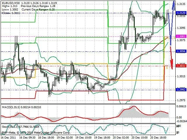 Předpokládaný pohyb pro dnešní den LONG. Případné vstupy do obchodu z hladiny 1.306 s předpokládaným cílem 1.316, případně až 1.3235. Proražení hladiny 1.306 může vést k pohybu s pravděpodobným cílem 1.3025 až 1.298.