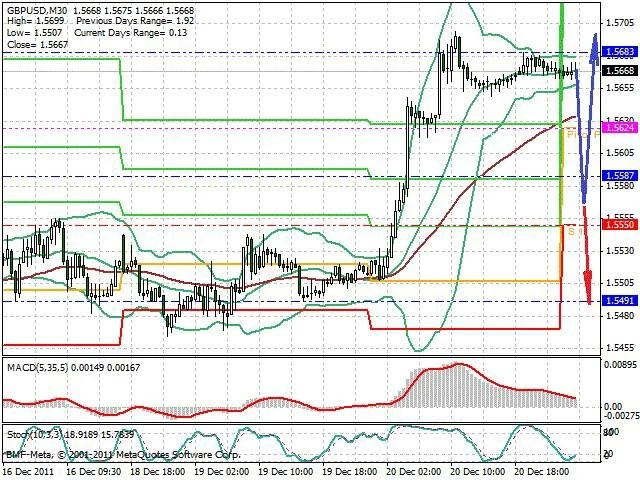 Předpokládaný pohyb pro dnešní den LONG. Případné vstupy do obchodu z hladiny 1.5565 s předpokládaným cílem 1.57, případně až 1.574. Proražení hladiny 1.5565 může vést k pohybu s pravděpodobným cílem 1.549 až 1.546.