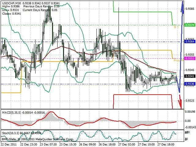 Předpokládaný pohyb pro dnešní den LONG. Případné vstupy do obchodu z hladiny 0.933 s předpokládaným cílem 0.9395, případně až 0.942. Proražení hladiny 0.933 může vést k pohybu s pravděpodobným cílem 0.9305 až 0.9275.