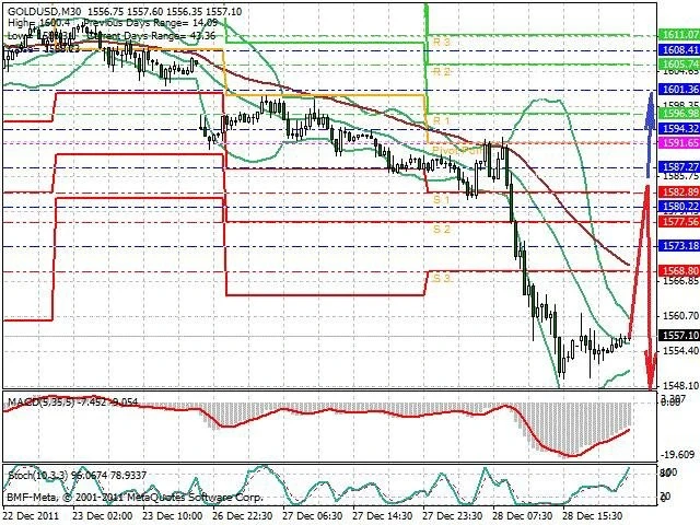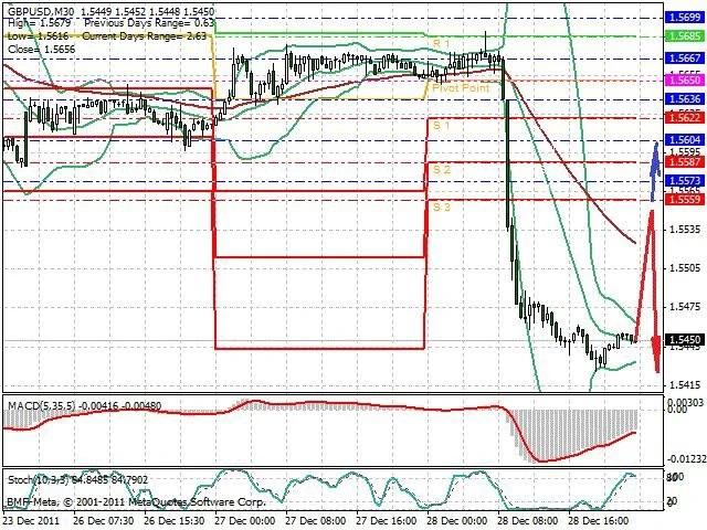 Předpokládaný pohyb pro dnešní den SHORT. Případné vstupy do obchodu z hladiny 1.5545 s předpokládaným cílem 1.5425, případně až 1.5405. Proražení hladiny 1.5545 může vést k pohybu s pravděpodobným cílem 1.5575 až 1.56.